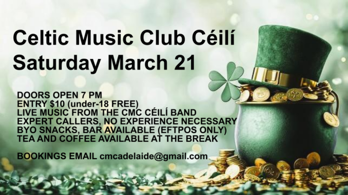 Can’t get enough St Patrick’s Day? Join us on Saturday March 21 to keep the celebrations going at the CMC céilí.