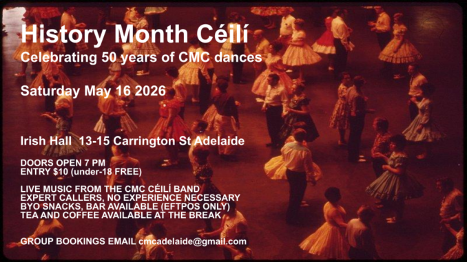 This year is also the 50th anniversary of the formation of the Celtic Music Club and the holding of the bush dances (céilí) at the Irish Hall in Adelaide.
